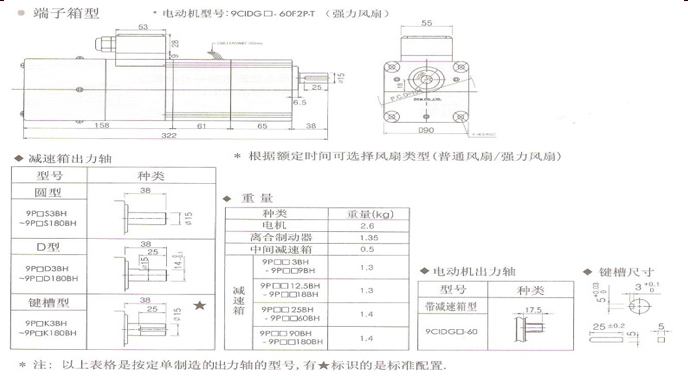 2、选型表中有颜色部分的型号为韩国国内(60Hz)用电机。